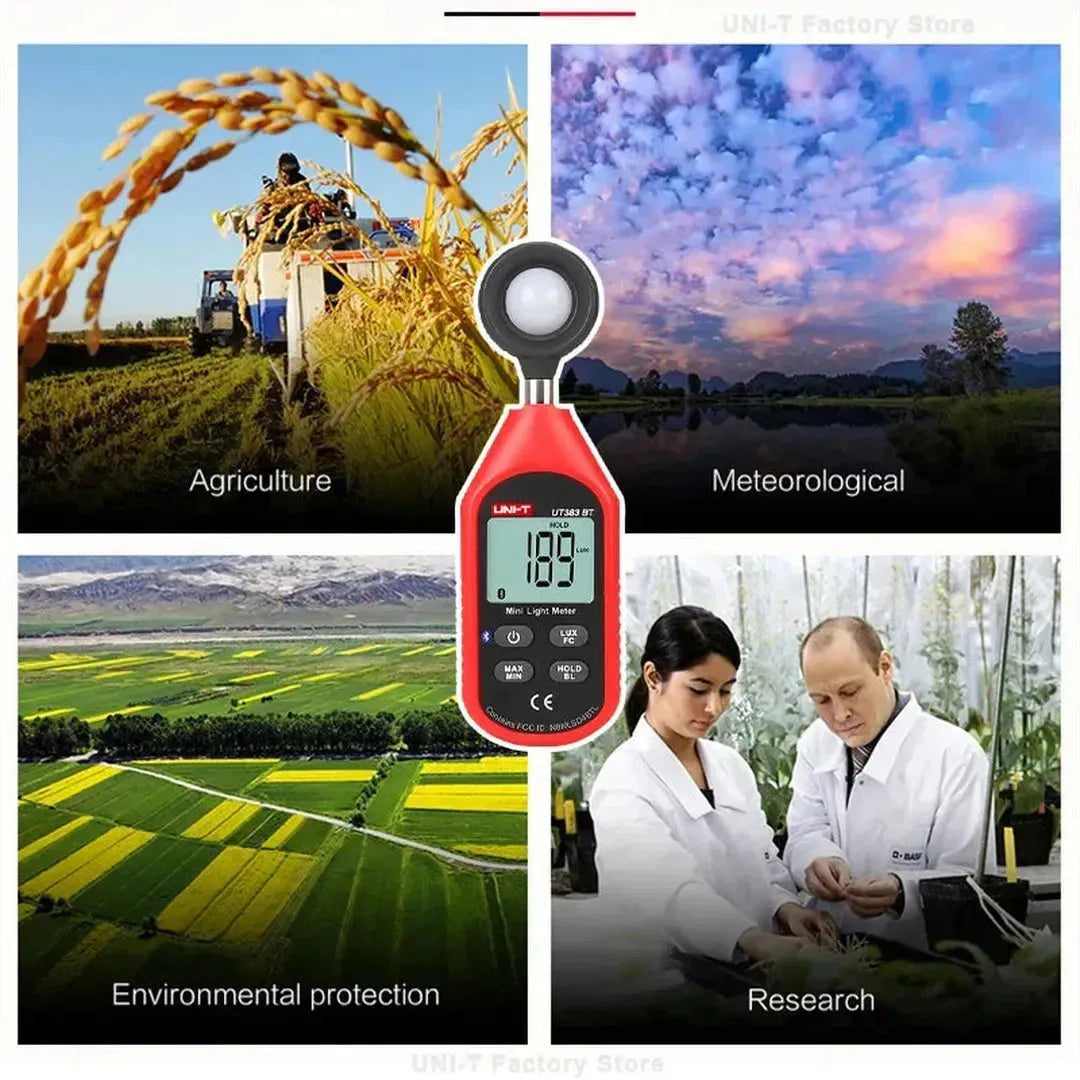 UNI-T UT383 और UT383BT पेशेवर लक्सोमीटर हैं जिन्हें विभिन्न क्षेत्रों में सटीक प्रकाश माप के लिए डिज़ाइन किया गया है। UT383BT मॉडल डेटा ट्रांसफर के लिए अतिरिक्त ब्लूटूथ कनेक्टिविटी प्रदान करता है।