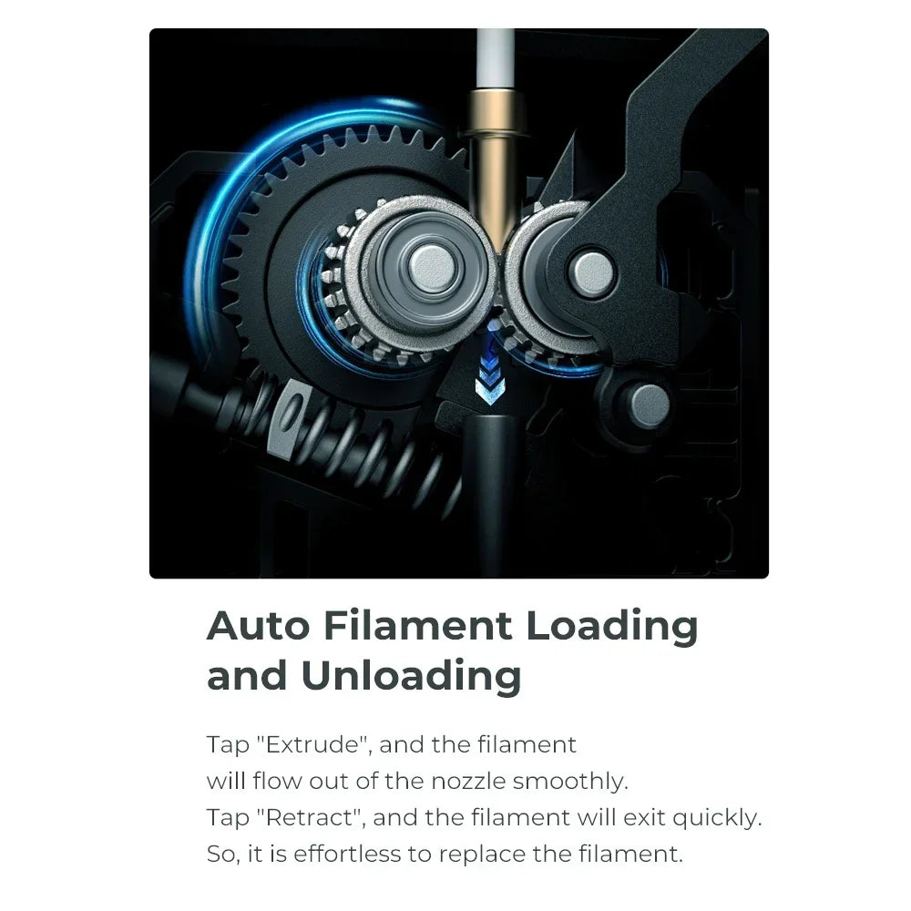 - ऑटो फिलामेंट लोडिंग/अनलोडिंग: लोडिंग और अनलोडिंग फिलामेंट के लिए एक-टैप ऑपरेशन, प्रक्रिया को सरल बनाना और डाउनटाइम को कम करना।